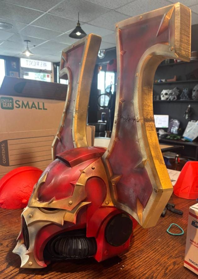 Whether showcased as a centerpiece or worn for conventions and events, this helmet is a must-have for anyone who wants to channel the berserker spirit of the 41st millennium.